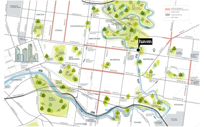 Haven on the river项目位于雅拉河畔,拥有壮丽的河畔景色,距墨尔本CBD仅3.5km。