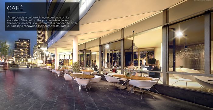 Array墨尔本精品海景公寓坐落墨尔本市中心Yarra河南岸的绝佳地理位置Yarra's Edge,是著名海滨胜地的第七座大厦,总高39层, 顶级开发商Mirvac又一力作, 全部采用绝色环保材料,整座公寓重视细节,追求品质,璀璨的玻璃外墙体现的是奢华与品味,紧邻Yarray河畔8M处,无懈可击的水景, 在室内可饱览360度墨尔本市中心及海湾景色。独一无二的奢华住宅以及无与伦比的优质生活环境将是墨尔本临水物业中又一座标志性经典建筑物。