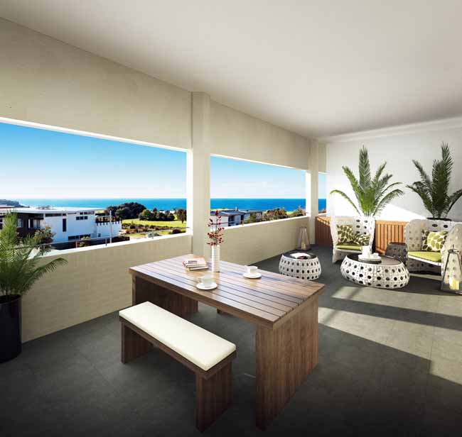 一个限量选择的屋顶休息区域,可俯瞰壮丽的海洋,高尔夫球场和邻近的公园景观