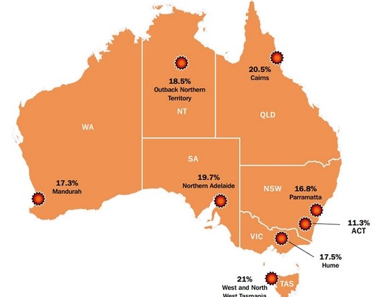 维州失业率最高的是休姆地区(Hume),包括Goulburn Valley、Wodonga和Wangaratta,失业率为17.5%。