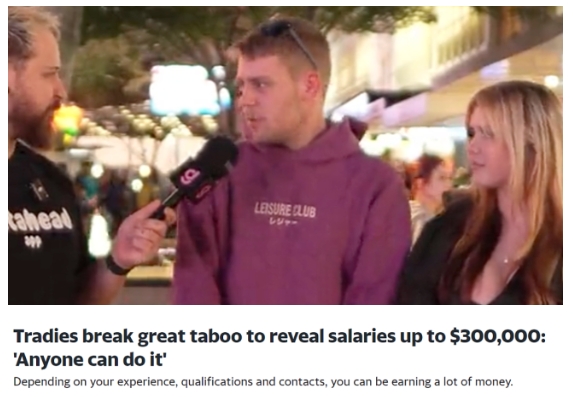 多名tradie在一次街头访问中透露了他们的实际收入情况,揭示了澳洲建筑、施工和采矿行业间存在的巨大薪资差距。