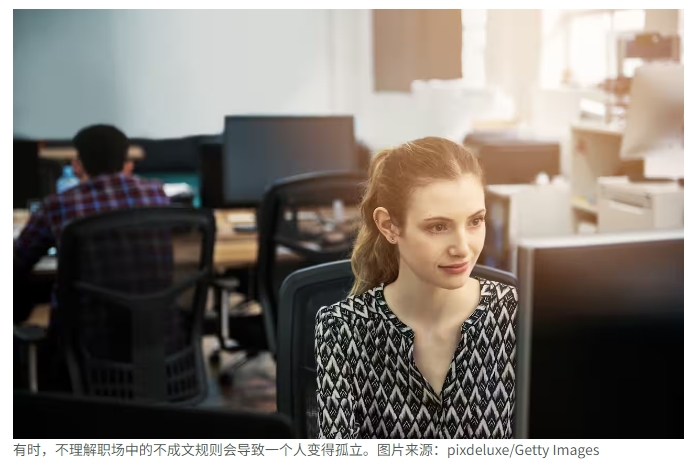 她补充说,有时不了解职场中的不成文规则会导致一个人变得孤立。