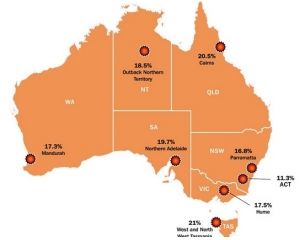 全国青年失业率分布图 (图片来源:ABC) 慈善机构圣劳伦斯兄弟会(Brotherhood of St Laurence)发布的澳大利亚统计局最新官方数据的分析结果显示,目前澳洲15-24岁的年轻人的失业率为...