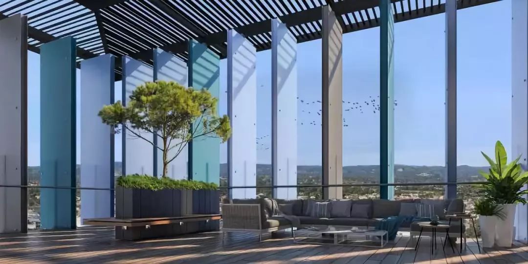 外部采取先进外墙材料,并以独特片式结构,在引入充足自然光照的同时,也以巧妙角度避免眩光与强光直射,实现“挡晒不挡光”的出众效果,并展现简洁明快的独特风范,让SKY成为阿德莱德天际线又一处明星地标!