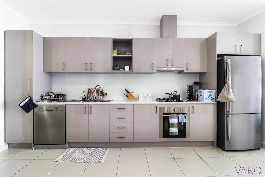 -开放式生活,厨房与石台面,不锈钢欧式家电。