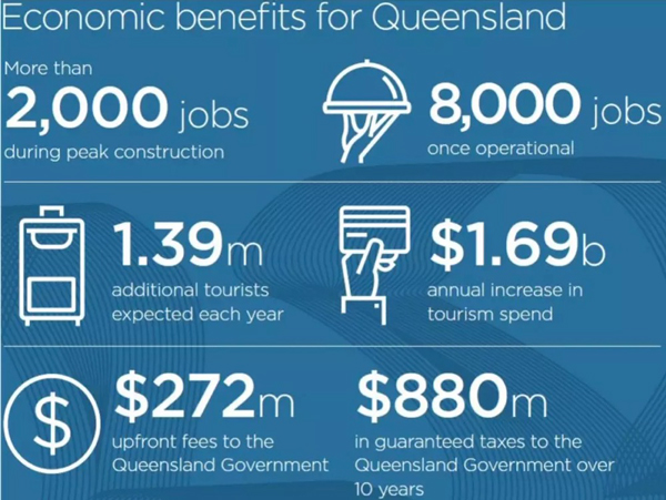 ◆ 投入运营的前十年,将至少向州政府带来8.8亿澳元的赌场税;