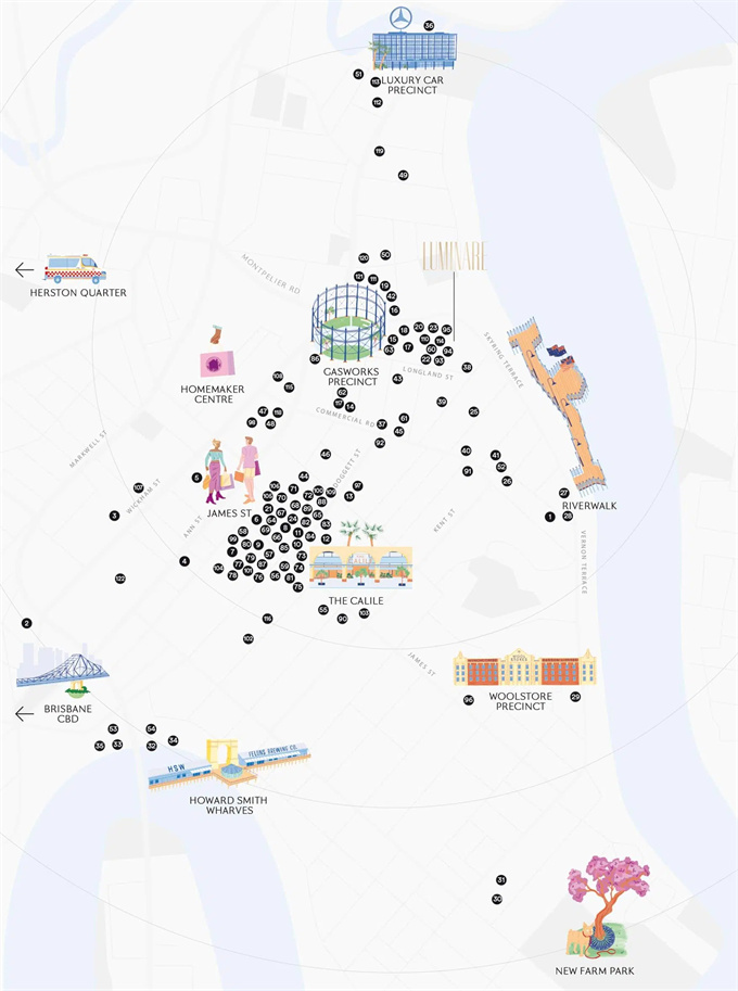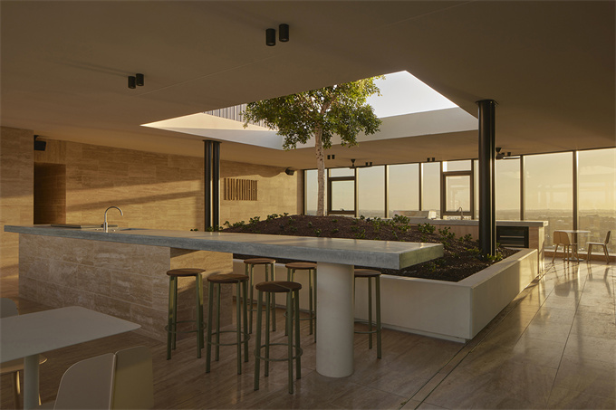 Luminare 的健康休闲场所还设有两个露天厨房,配备烘烤和平罩烧烤设施以及咖啡馆风格的座位,可俯瞰城市和河流的壮丽全景。