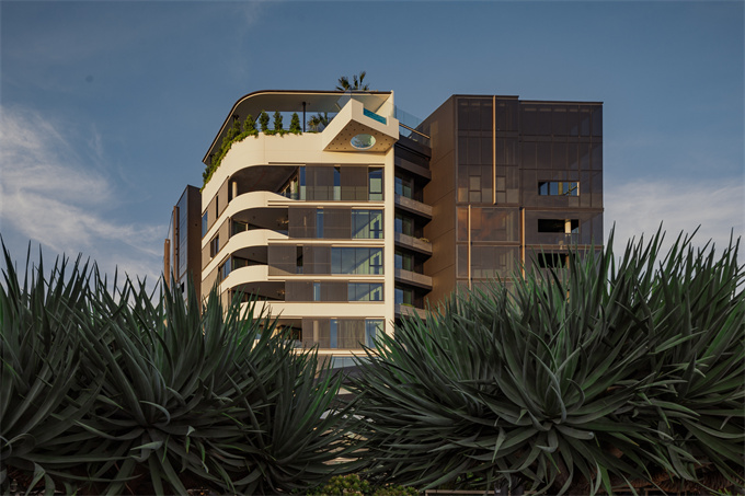 Luminare 的钻石雕刻外观,装饰有深青铜色发光玻璃和弯曲的带状混凝土悬臂,使 Luminare 成为一个独特且不断变化的地标。白天,该建筑反射不同的亮度,而到了晚上,它变成了一盏迷人的灯笼,为周围环境增添了一丝魅力。