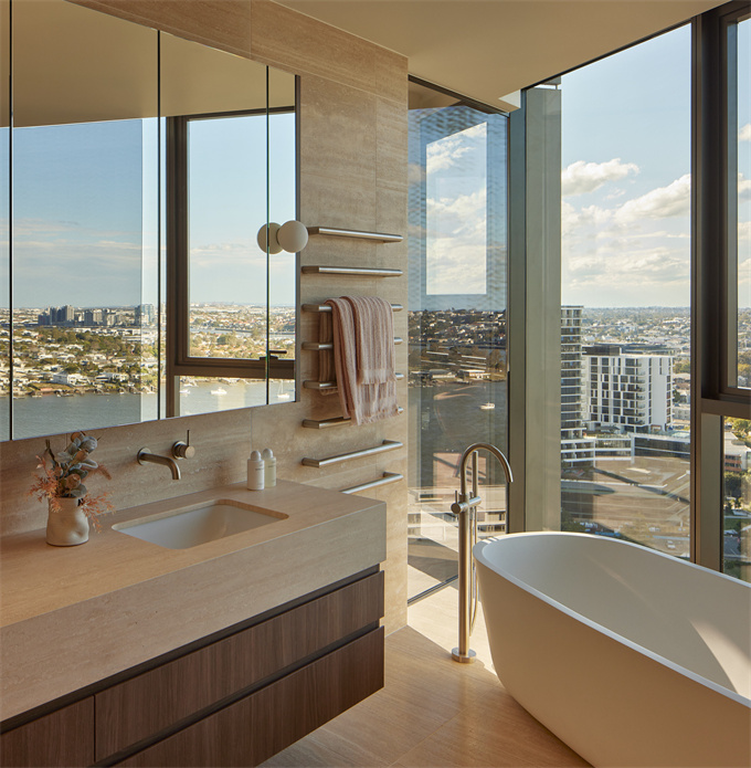 在您的主卧套间内开启一场感官复兴,天然石灰华石与精致的 Astra Walker 装置完美融合,包括额外舒适的男女盥洗台、全深浸泡浴缸、加热毛巾架以及由全球蒸汽领导者 Mr Steam 提供的超大步入式蒸汽淋浴。