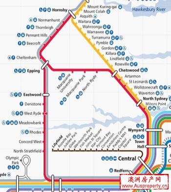 上图为火车线图表,Thornleigh有两条铁路线,一条去麦考瑞大学(仅四站), 华人重镇Eastwood, 奥运村等内西区区域到达悉尼市区。另外一条火车线走悉尼北区,途径北区富人区Turrumurra, Killara, Chatswood, North Sydney到达悉尼市区。