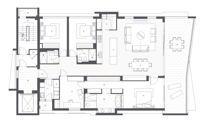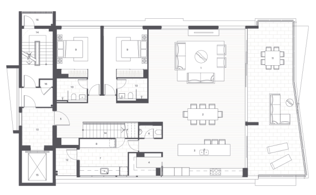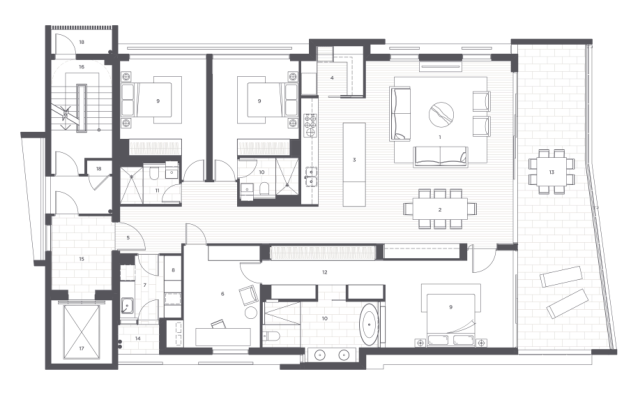布罗德19 公寓每户都可足不出户享受到无尽的海景。