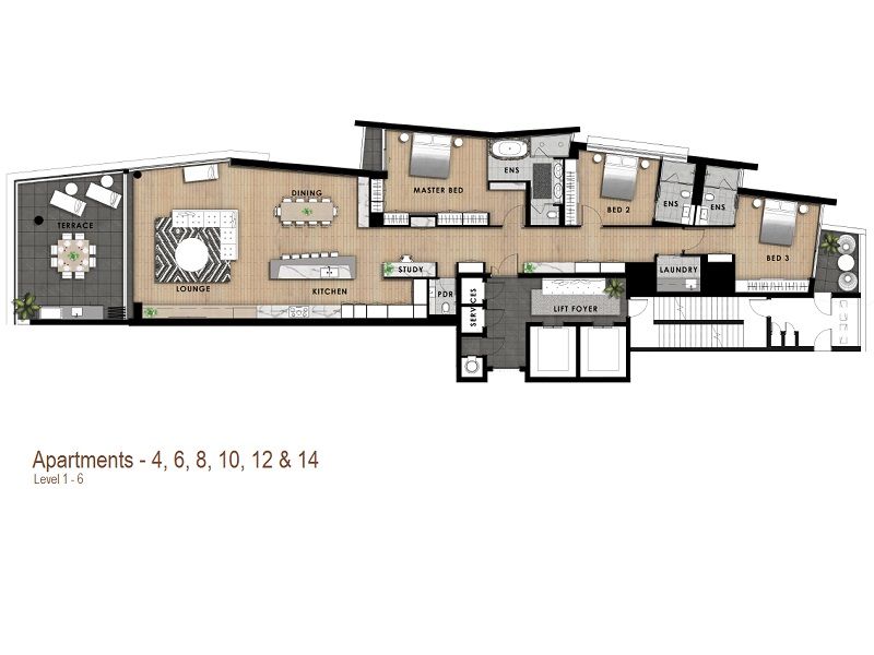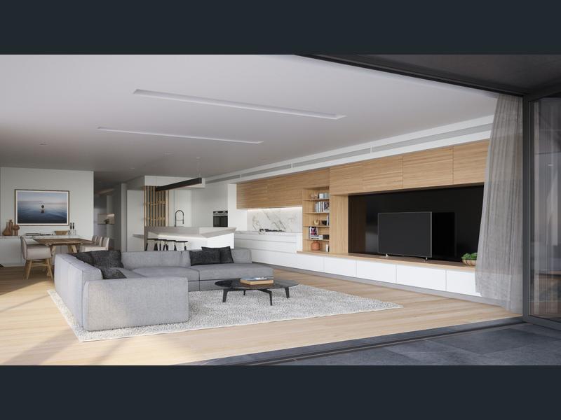 *宽敞的生活和餐饮区,展示海岸景观和昆士兰典型的室内/室外生活。