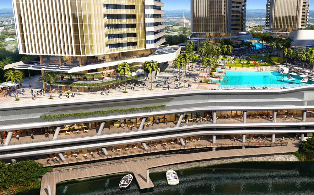 - The Star集团将在总体规划区与太平洋购物中心之间建立空中天桥,步行数分钟可到达昆州最大、最高端的商业中心