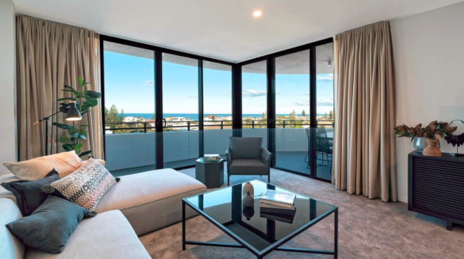 OTTO Mermaid Beach精品公寓项目别具一格,其位置优越、设计精致、内饰一流,拥有两室和三室不同布局的奢华公寓,共有8层,77套公寓。