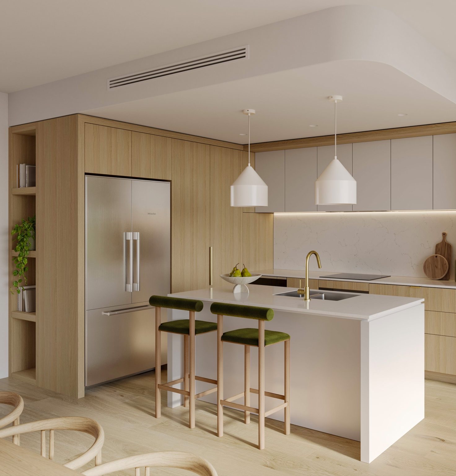 室内设计:公寓内部经过精心设计,配备现代设施和沿海纹理。集实用性和美学于一体,提供豪华而功能性的生活空间,营造宁静的氛围。