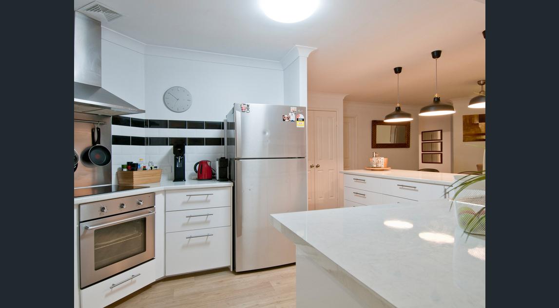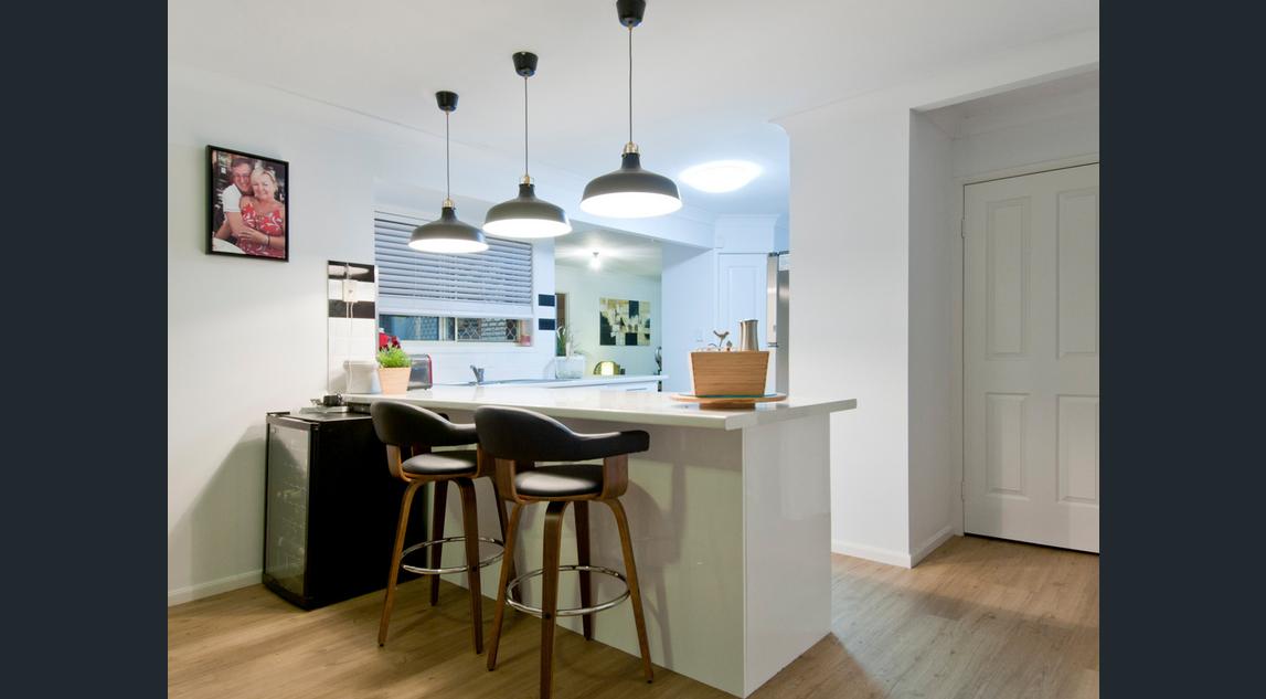 *家的中心是全新的现代厨房,其功能布局,包括早餐吧台。