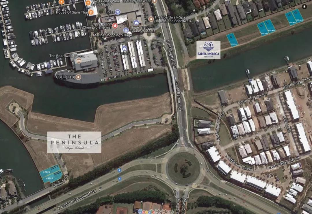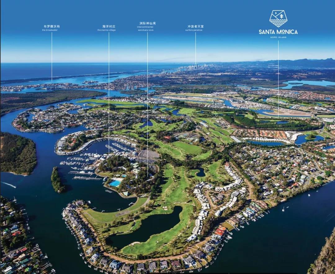 Santa Monica位于Coomera 河河口,邻近世界著名的神仙湾住宅社区、两座国际比赛标准各18洞的高尔夫球场(The Pines & The Palms),及希望岛渡假村高尔夫球场(Hope island resort)。Santa Monica是希望岛独一无二的临水社区。