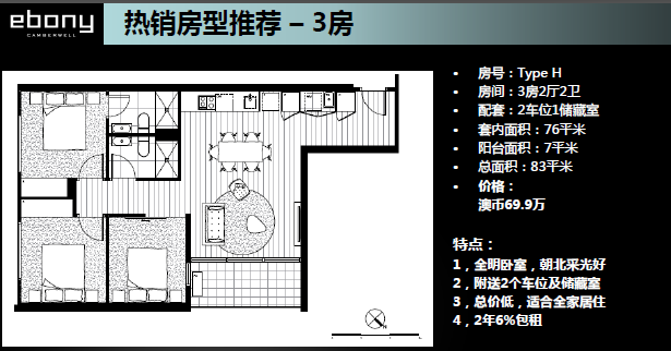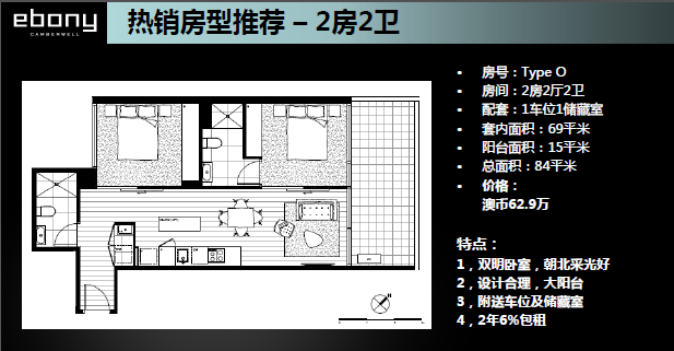 拥有超过25年经验的Thenerry地产集团倾力打造的精品公寓,创新卓越的设计,舒适的社区环境,Ebony是在新新城区Camberwell置业的极佳选择。生活便利,周边遍布墨尔本最好的学校,公园,商店和餐厅,距离墨尔本CBD也仅8公里。