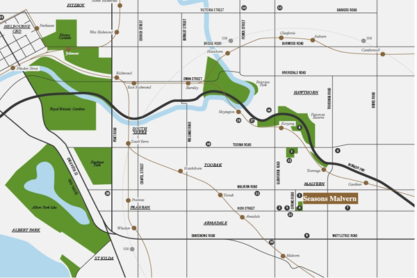 墨尔本精致园林公寓Seasons Malvern位于澳洲墨尔极富盛名的东南部富人区,地理位置优越,邻近电车、巴士以及火车站,交通直达墨尔本CBD以及周边各个地区。此外,从公寓可步行至著名的De La Salle学院, 毗邻大中小学府、公园以及众多商铺和大型购物中心,社区配套完善,绿树成荫,,细致精巧独具特色的设计与周边环境遥相呼应。