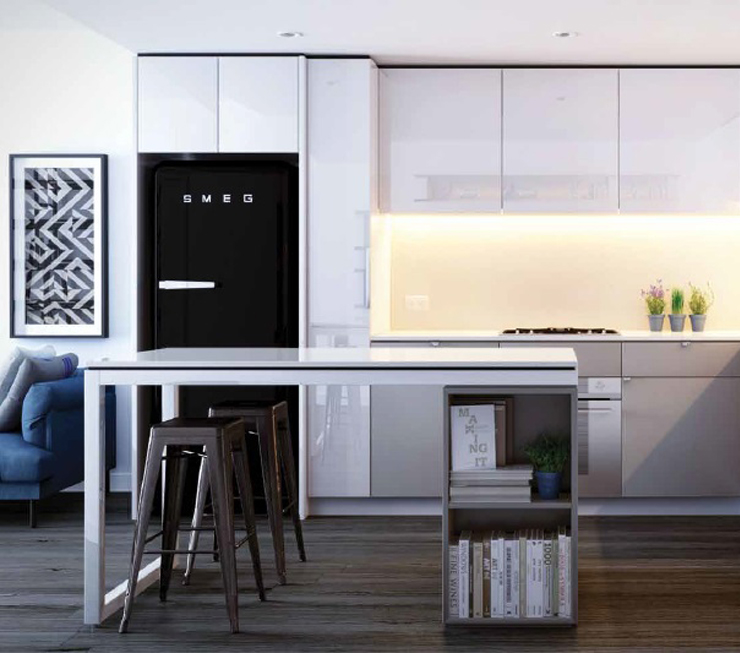内部设计特色:顶级设计,最大化每一户型的自然采光和全方位体验CBD美景及dandenong山景。奢华厨房设计,采用欧洲知名厨房品牌Smeg,升级后采用德国顶级厨房品牌Miele 。以及精致的实木厨房设施让你体验尊贵的豪华生活。