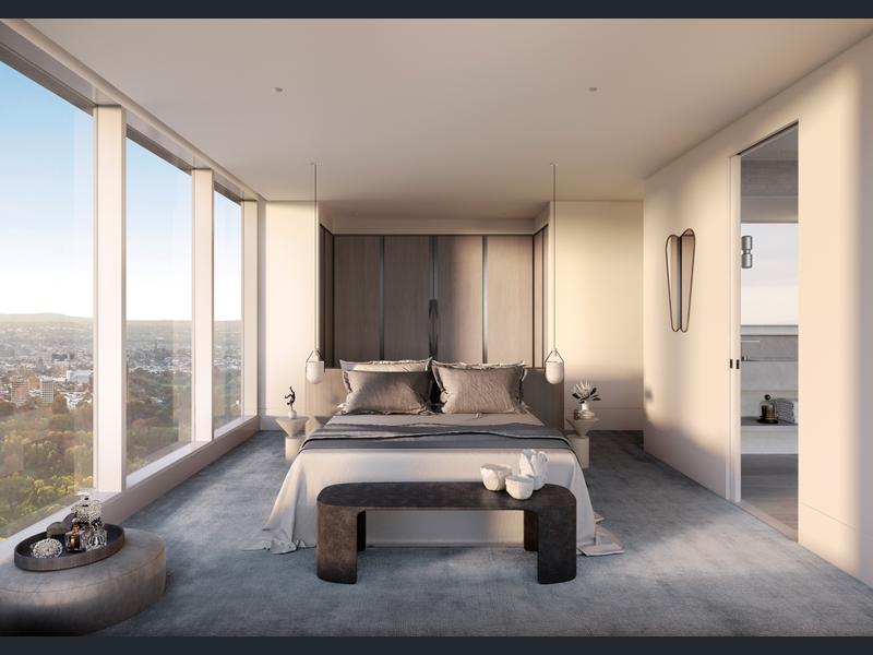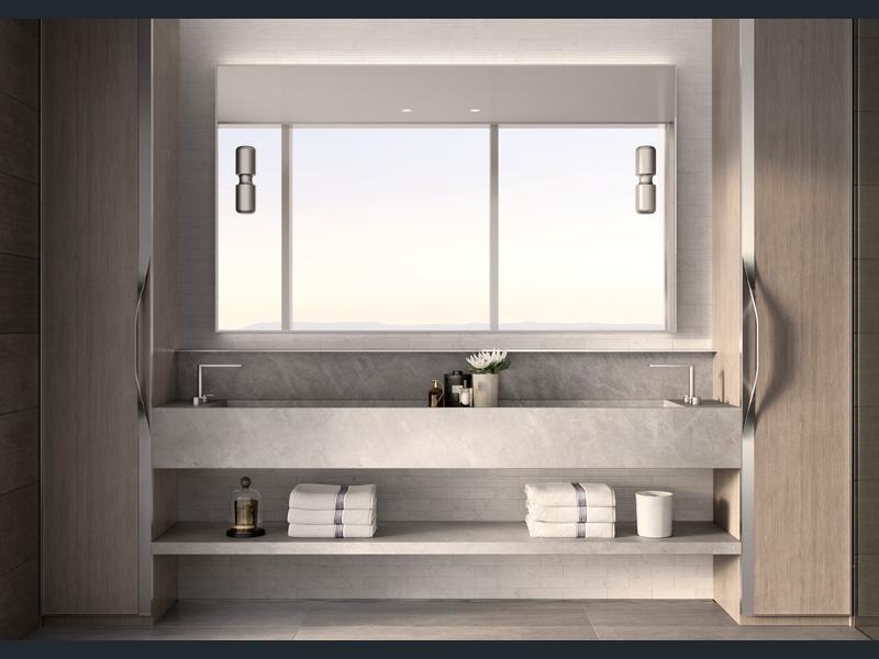 主卧室配备了从地板到天花板的步入式衣橱,以及配有独立浴缸的套房。