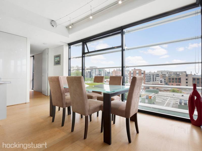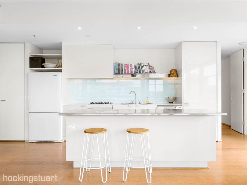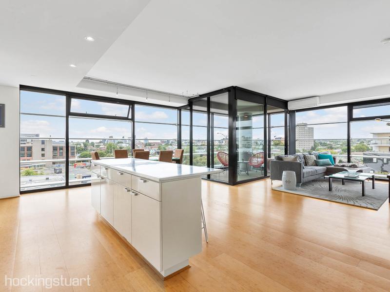 华丽的“侯爵公寓”(Marquise apartment)里的玻璃包裹着一种感觉,它是通往墨尔本最具标志性的叶形林荫大道的一座建筑灯塔,这是一套两居室、两卫朝北的公寓,让你触手可及的墨尔本美景尽收眼底。这套公寓位于第五层,最显眼的位置是从地板到天花板的双层玻璃窗,朝北和向东,可以看到从圣基尔达路(St Kilda Road)一直到城市天际线(skyline),穿过South Yarra和Prahran,到遥远的丹东山脉(Dandenong Ranges)。阳光充足的开放式生活区和用餐区通往一个半封闭式的玻璃花园房间,在新鲜空气中尽收眼底,尽情享受;隔壁的厨房配备了不锈钢台面、Smeg烘箱、Fisher & Paykel双抽屉洗碗机和大量的橱柜空间。