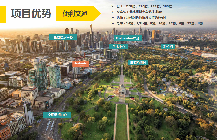高投资回报,巨大的升值潜力,一房提供高达2年5.5%的租金担保。作为南岸地区的核心地段物业,Botanic项目周边购物、教育、交通十分便利。最近一段时间,墨尔本每周房产拍卖公寓最高价,纷纷在该地区产生,未来升值空间十分巨大。