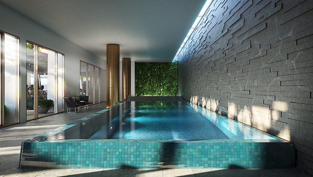 您将受到优雅的欢迎。高级共用设施包括宁静的花园休息室,豪华游泳池和健身房,而美丽的景观则将建筑形式固定在大自然中。