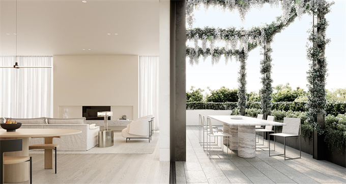 室内装饰与保罗·康拉德的标志性风格相得益彰,精致、开放且自然光线充足。沉浸在奢华的生活环境中,拥有华丽的设施、无缝的室内外流动和精心设计的私人空间,让您重焕活力。