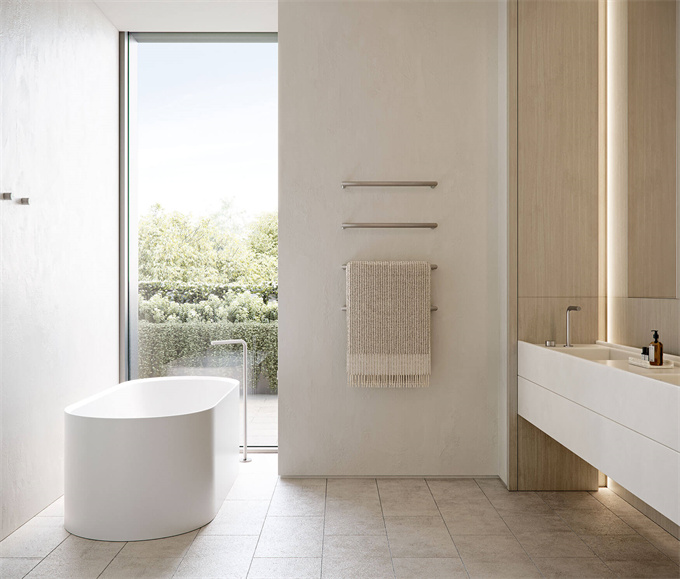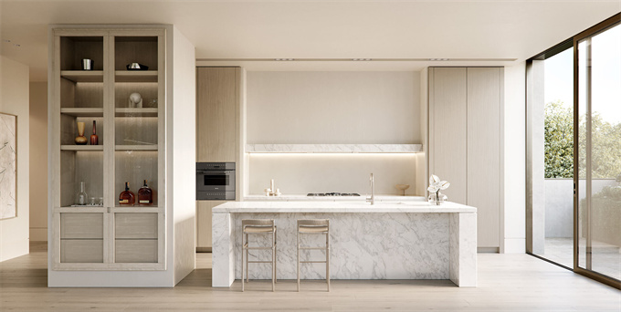 Soligo 的装饰色调迷人且设备齐全,包括耐用的欧洲橡木地板、质朴的石灰石瓷砖以及从优质意大利采石场采购的精美卡拉拉大理石。这些材料共同形成了一种有机且纹理丰富的美感,以触感表面和低调、平静的色调为特色。