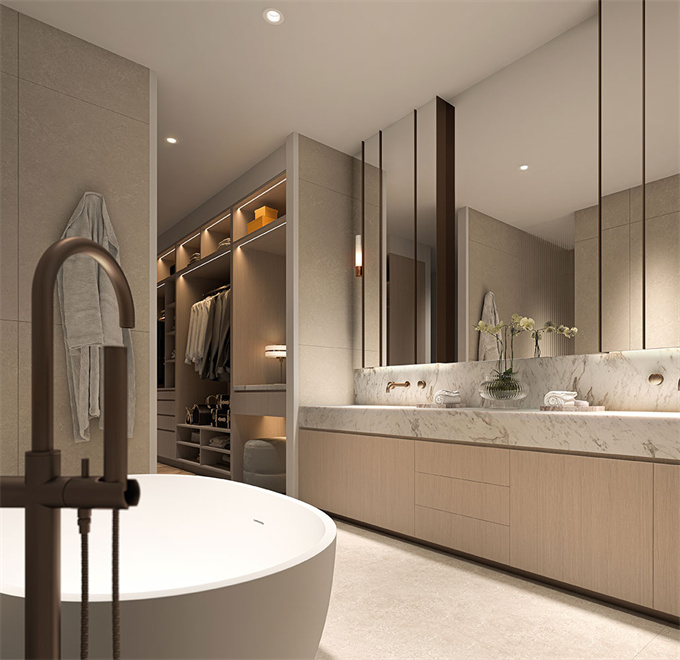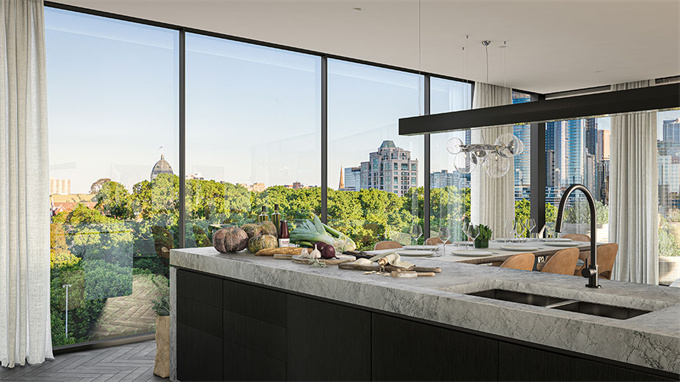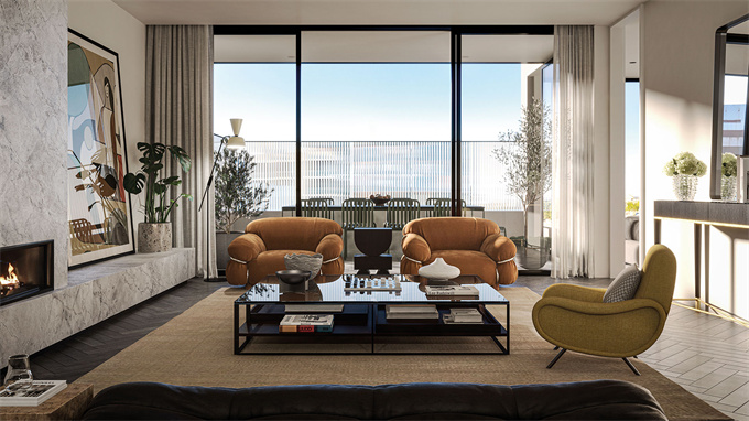 由 M3 Design 设计,灵感来自 Carlo Scarpa,外部混凝土玻璃和石材空间超越了国际风格,创造了温暖的生活空间。La Storia 住宅区的每套三居室住宅都优先考虑了自然光和空气流通。最大限度的功能性和活动性是每个楼层平面图的核心。设计为坚固的结构,使用自然材料,让人联想到斯卡帕的现代主义和诠释才华,空间由石头、混凝土和玻璃制成,通过超越国际风格的手工元素软化,营造出温馨的居住空间。