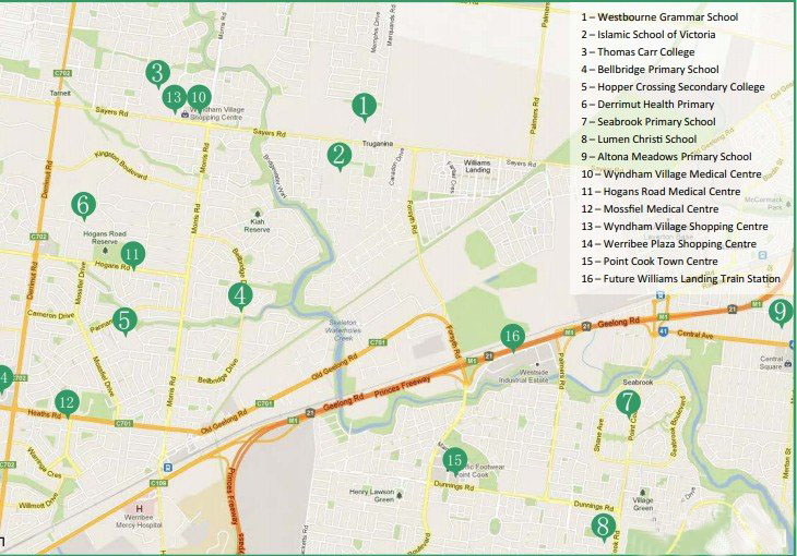 临近公共交通系统丰富,包括将要建成的Williams landing大型火车站,以及现有的公交bus网。周边生活配套齐全,满足居民购物,教育以及医疗的需求。