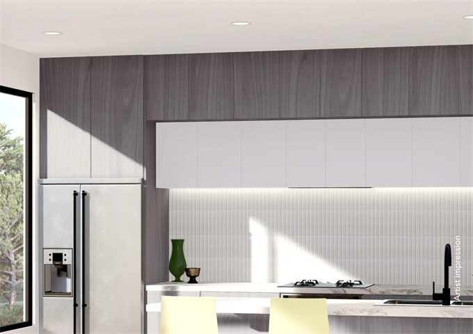 在这个精致而脚踏实地的空间中尽情享受您的烹饪热情,光滑的石材和磨光的木材完美融合。这间厨房设有宽敞的岛式早餐吧、设备齐全的食品储藏室以及充足的抽屉和橱柜,确保提供整洁的烹饪体验。厨房与优质 Fisher & Paykel 不锈钢器具完全集成,与温馨的开放式起居区无缝融合,这要归功于光滑的木地板,创造了无缝过渡。