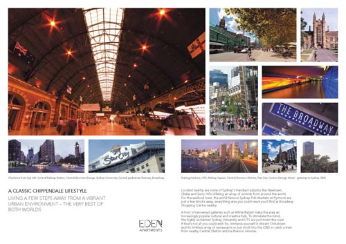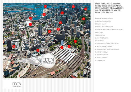 EDEN(伊甸园)项目靠近悉尼的时尚郊区新城。如果您是一个海鲜爱好者,那里有世界著名的悉尼鱼市场,项目离“皮门特”也仅有几个街区的距离。并且,项目靠近著名的百老汇商场,在那里,您可以找到您日常生活所需的一切。除便捷的生活以外,EDEN(伊甸园)项目还被一大批知名画廊如“小白兔”所包围,使得这个区域成为越来越受欢迎的文化和创意中心。另外,EDEN(伊甸园)项目离悉尼大学和UTS也近在咫尺。