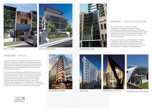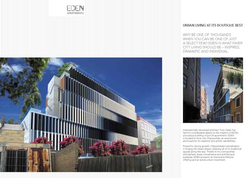 EDEN(伊甸园)项目是由国际著名建筑设计团体“托尼•欧文”集多年的设计经验打造而成。设计团队把所有的心血付诸于这仅有的26套公寓的建设里。EDEN(伊甸园)项目位于市中心“奇彭代尔”,“奇彭代尔”是悉尼最具创新的并拥有一定艺术氛围的区域。“奇彭代尔”在保留所有传统的同时不断的创新发展使得身处在“奇彭代尔”会感受到国际化的氛围和纯粹简约的建筑体系。EDEN(伊甸园)项目能给独具慧眼的您带来印象深刻的生活方式和高回报的城市投资。