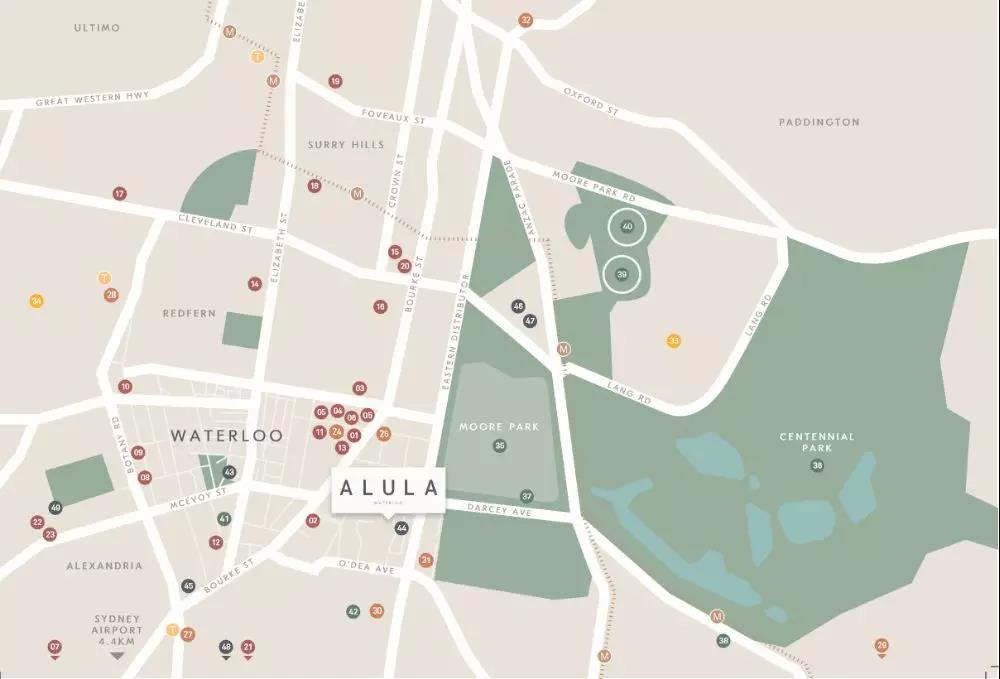 Waterloo位于悉尼中央商务区以南3公里处,驾车至市中心仅需10分钟。