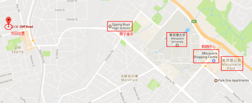 购物中心 Myer、Target、BigW、Franklins、Woolworths、Dick Smith,以及戏院等各种设施。 楼盘位于Epping中心地带,地理位置十分优越,Epping距离大型商场Macquarie Centre只有大约10分钟车程。