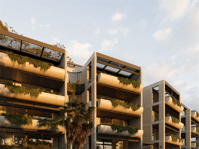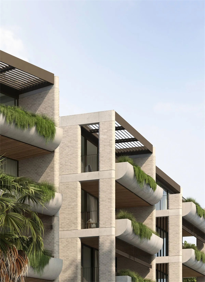 别墅的住户将享受独家使用精美的现场设施。该开发项目的设计强调室内外生活,设有弧形阳台边缘花盆和分层立面,让居民能够在私人奢华中体验户外活动。上层顶层公寓采用引人注目的金属覆层,为建筑物的建筑表现增添了独特的青铜皇冠。