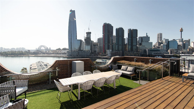 -海滨生活,可欣赏全景,宏伟的私人屋顶露台非常适合娱乐,可 360 度欣赏悉尼港和悉尼中央商务区天际线