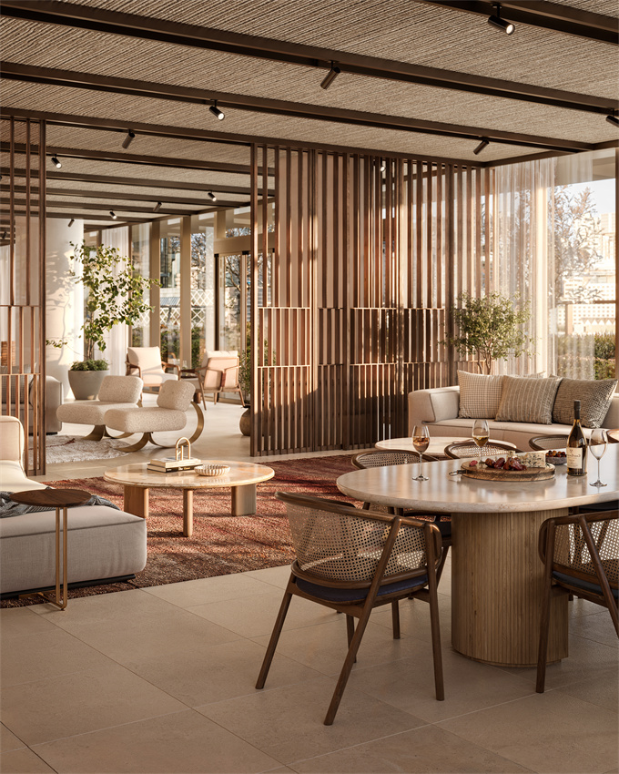 精心打造的内饰捕捉了天然材料的美感,为高级系列住宅增添了一层永恒而低调的奢华。宽敞的起居空间以景观为灵感,旨在最大限度地利用光线和视野,营造出舒适而宁静的避风港。