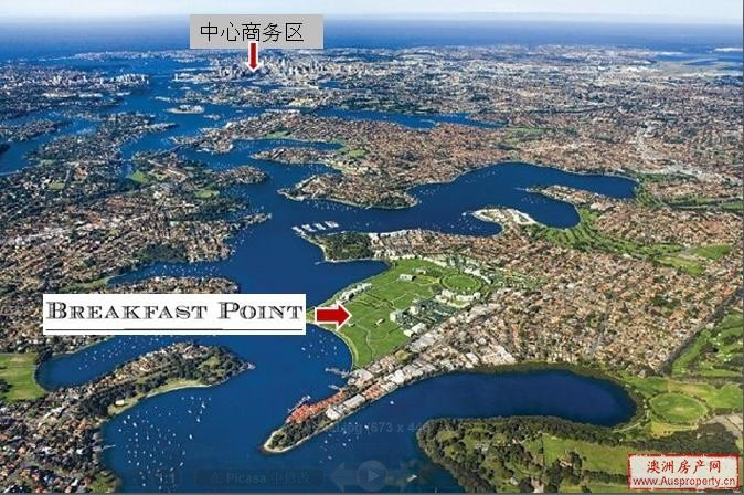 Breakfast Point 是一个经过仔细规划的,占地52公顷的亲水公寓以及可以为自我维持社区。Breakfast Point 为住户提供无可比拟的低密度生活区,风格多样的住房,美不胜收的海港风光以及公园式的户外环境。Breakfast Point位于悉尼港的上区,距离悉尼CBD仅仅二十分钟路程,住房分为融合传统与现代风格的公寓, 别墅和独立别墅。社区位于郊区,设有超过14公顷的精美花园和公园,以及绝无仅有的社区设施和服务,满足住户的所有需求。