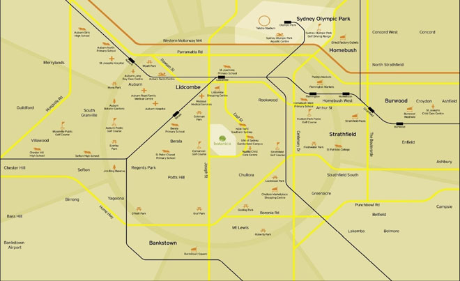 从Botanica片刻便可到达Lidcombe火车站,到达主要公路如M4和M5也十分便捷。另外,NSW政府开通的912公交线通过Rookwood路和Botanica连接了Bankstown和Lidcombe。这个Joseph大街上的公交站就位于Botanica的外面右侧。