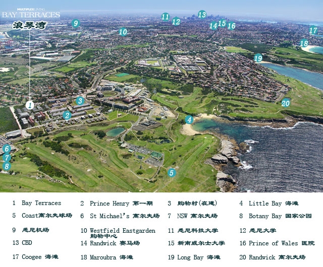 Little Bay 介绍:属于悉尼东区(名贵区),为悉 尼内海,其独特的地理位置,飓风和海浪均被挡在海湾屏风之外。常年保持平静祥和的蔚蓝海水和灿烂的白色沙滩,海滩距离市中心CBD约15公里,开车 15-20分钟,距离悉尼国际机场8公里,开车12-15分钟。数分钟开车至Botany Bay National Park 国家公园和著名景点La Perouse。这里有享誉世界的Little Bay海湾及邦迪海滩,毗邻多个高尔夫球场,The Coast Golf Club、St Michael's Golf Club,均是国际标准18洞锦标赛场地。现在这个区已被悉尼各大开发商争夺,将会建成一个时尚奢华的海边豪宅区,尤其受到悉尼新贵的追捧。