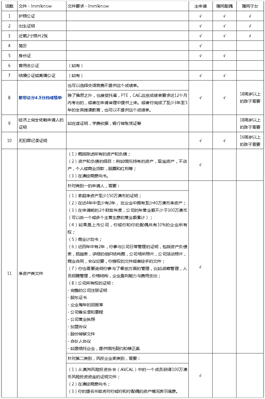 5、需要州政府担保;要求在实业上至少投资100万澳币(各州要求不同)