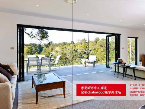 项目紧邻chatswood高尔夫球场,9个卧室,3个独立起居室,3个独立厨房,1个游泳池,土地面积为1088平米,套内面积492平米,顶级奢华室内设计
