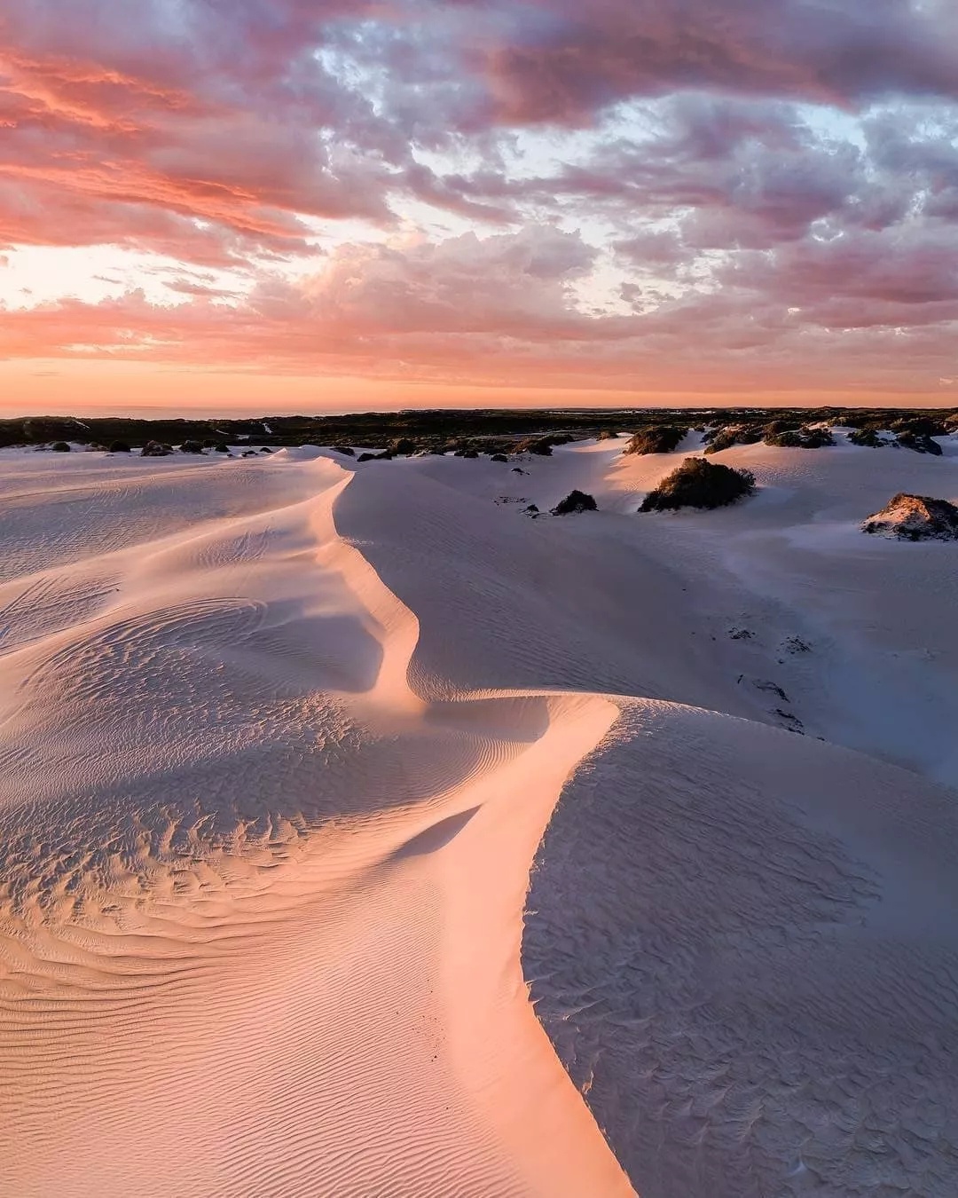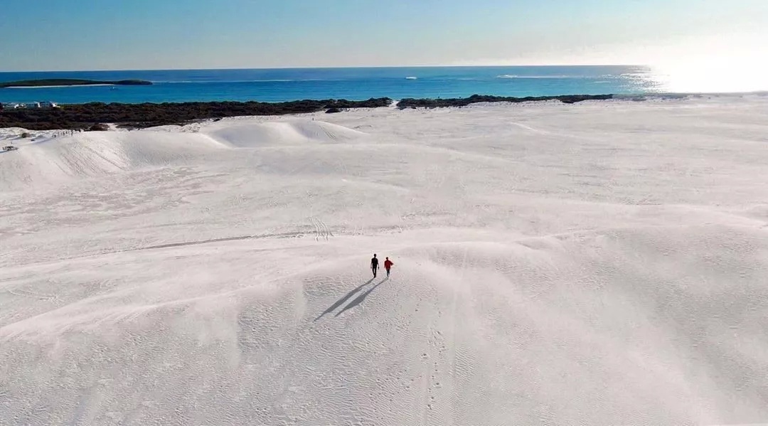 自驾北线:兰斯林Lancelin-塞万提斯Cervantes龙虾工厂-尖峰石阵Pinnacles Desert-倾斜的树Leaning Tree-赫特泻湖Hutt Lagoon pink lake(粉湖)-卡尔巴里国家公园Kalbarni National Park(世界之窗)兰斯林Lancelin一路自驾往北会经过西海岸周边数不胜数的白沙丘,然而开放的却不多,兰斯林算是其中最知名的一处白沙丘。