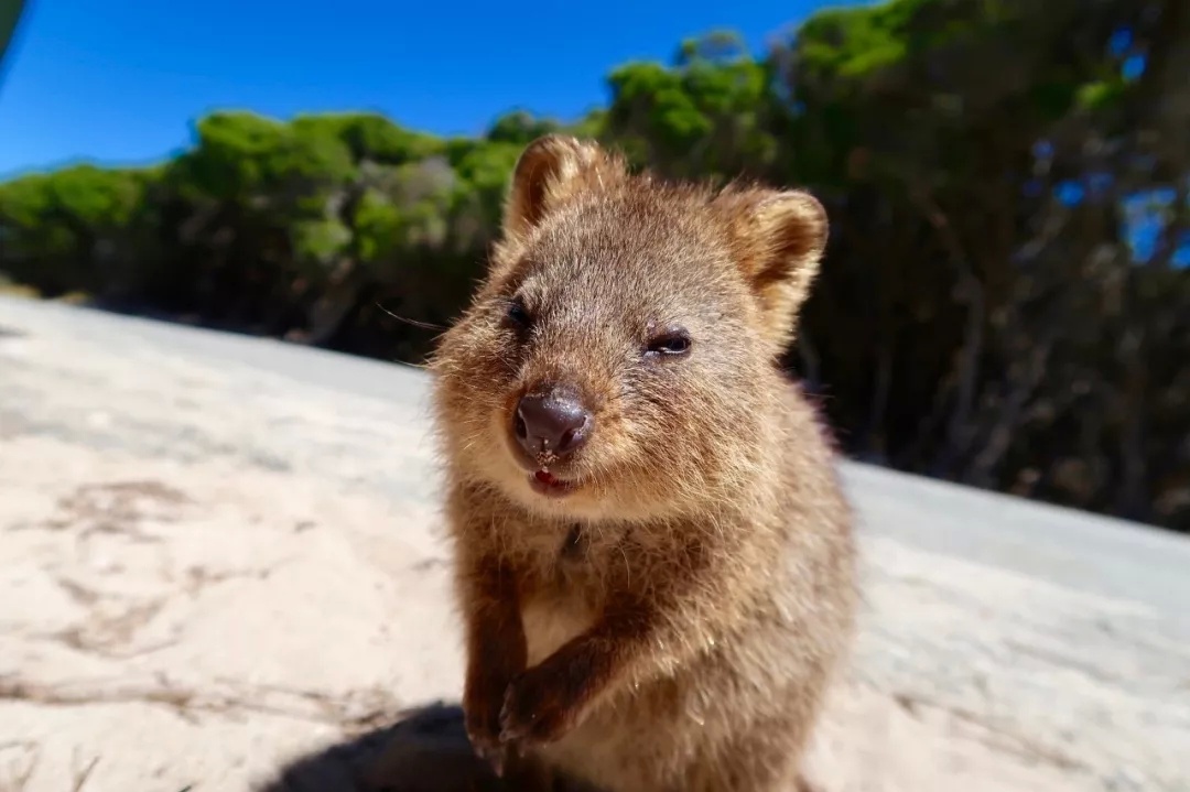 作为世界上最小的袋鼠之一,Quokka身高大约60厘米左右,胖嘟嘟的脸上挂着甜甜的笑容,因此罗特尼斯岛也被称为老鼠岛。