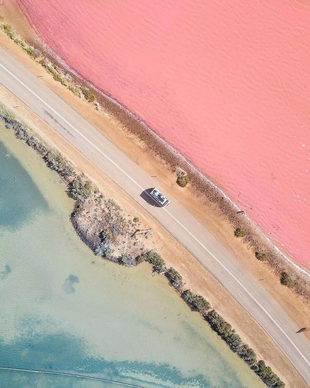 赫特泻湖Hutt Lagoon pink lake这座粉湖是世界几大粉红湖里最容易到达的一个,距离珀斯开车大约5、6个小时,10月11月刚好是最美的季节。
