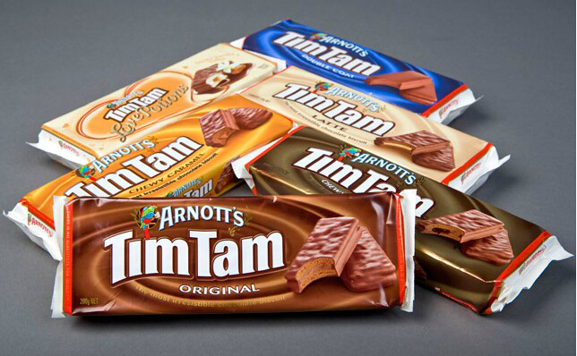TimTam巧克力饼干是享誉全球的澳洲第一巧克力饼干品牌,也是世界上最让人难以抗拒的饼干。一层巧克力、一层麦香、一层奶香,醇美的滋味让人欲罢不能,咬一口,浓浓的、滑滑的,再啜一口咖啡、牛奶或红茶,让巧克力夹心一丝一缕地融化在舌尖,太美好了!