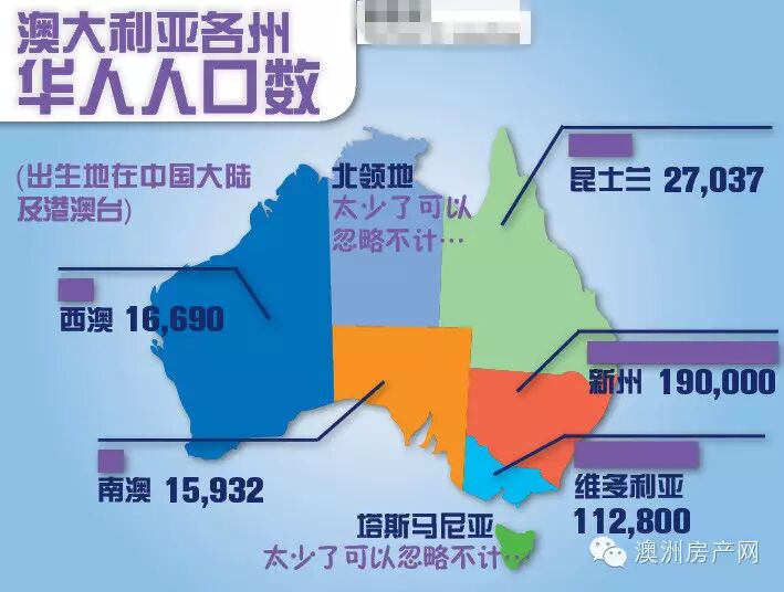 澳大利亚各州华人人口数: